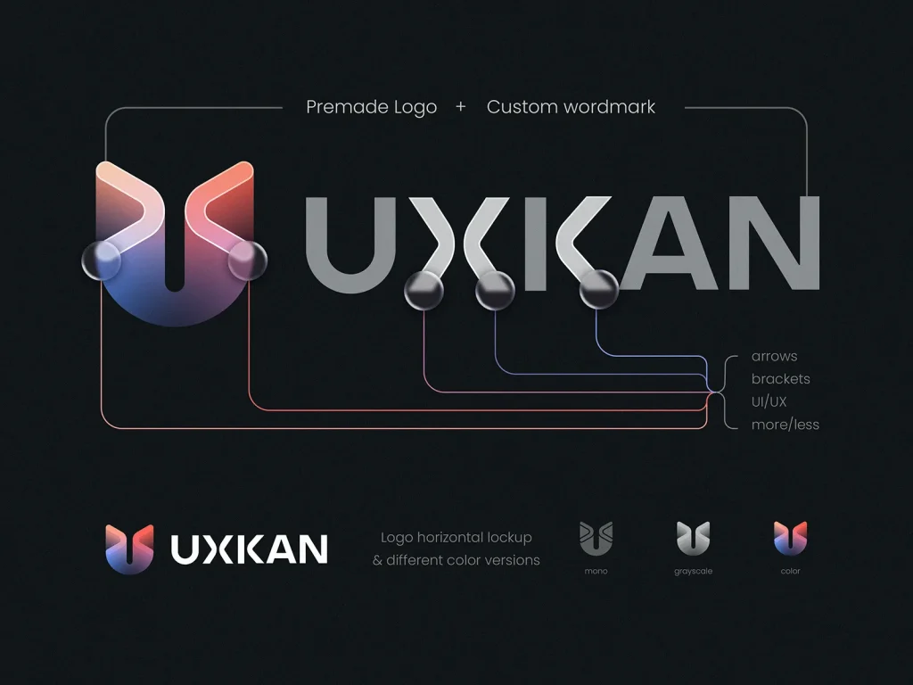 The next step: crafting a custom wordmark for UXKAN, designed to complement the icon’s geometry and tone.